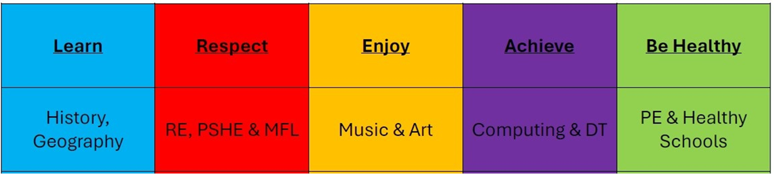 At Higher Failsworth Primary School, our school values are at the heart of our wider curriculum. Whilst each subject encompasses all school values, we have made curriculum teams dedicated to each value to ensure consistency, responsibility and opportunity for all.